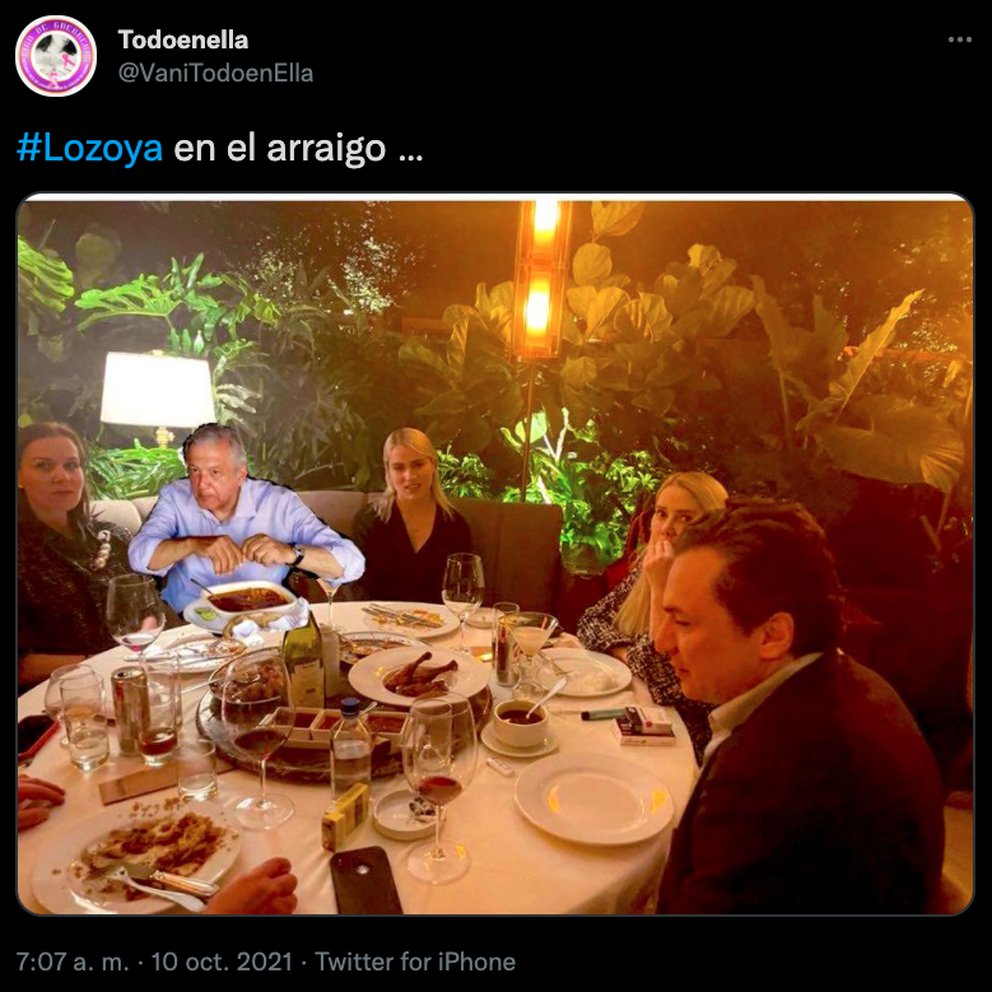 La aparición de Lozoya se viralizó luego de que la periodista Lourdes Mendoza compartiera la imagen en donde se le ve acompañado de Eduardo Molina, Lore Guerra Autrey y Doris Beckmann.