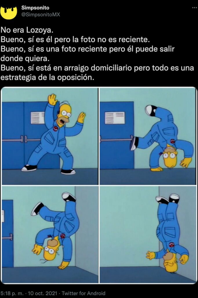 “Entré y, efectivamente, Emilio Lozoya estaba en tremenda fiesta, departiendo, ligando y comiendo el afamado pekin duck de la cocina cantonesa china. Casi de inmediato lo reconocí, aunque estuviera de espaldas a la entrada, y sin perder el tiempo les tomé cuatro fotos. Doris Beckmann se percata y grita: ¡Ay, no! Lozoya voltea, me ve y, mientras yo le digo: ‘Tienes brazalete, ¿no estás arraigado?’, él grita: ‘Camarero’ (habrá creído que estaba en Madrid o en Málaga?) para que lo rescatara de las imágenes de mi celular. Acto seguido, me di la vuelta y me salí”, describió la periodista.
