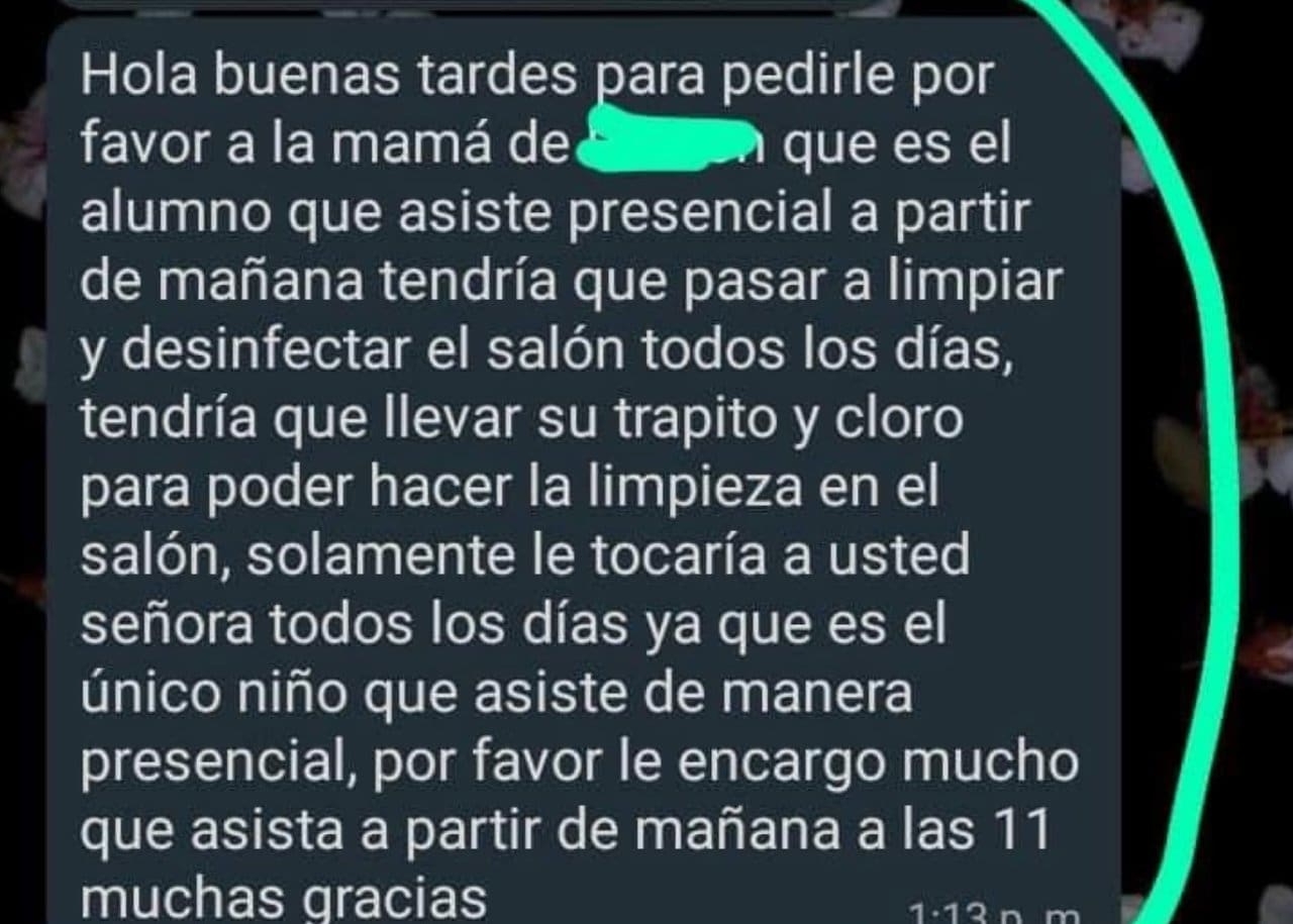 La mujer imparte clases en el preescolar de Niños Arquímedes, compartió una foto en la que sale un salón semivacío en compañía de un solo alumno.