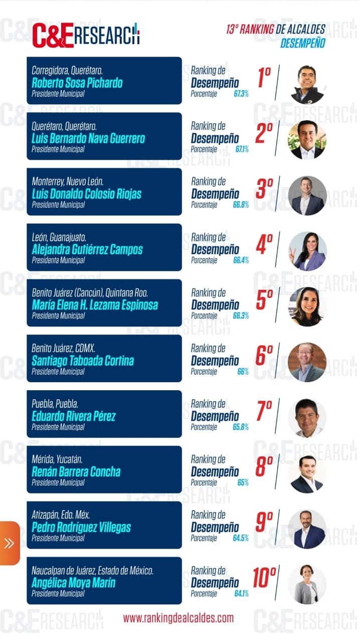 Mara Lezama, alcaldesa de Benito Juárez, se posiciona en el top 5 de los mejores presidentes municipales del país.