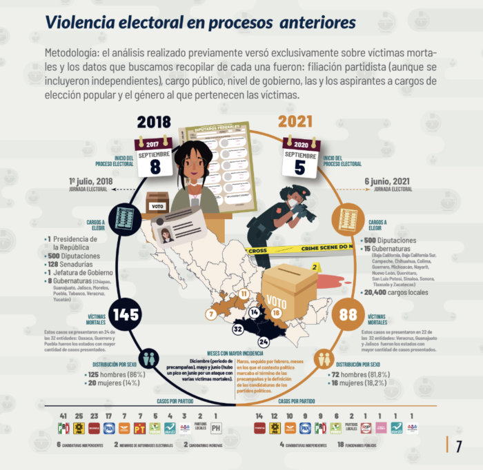 Laboratorio Electoral explicó en su reporte que, en los comicios de 2018, se reportaron 145 víctimas mortales durante el proceso electoral, y en el de 2021 se sumaron 88 homicidios.