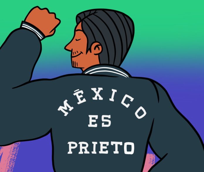 En otra imagen, en la que el hombre que tiene una chamarra similar a las que hace unos años se volvieron populares ‘México is the shit’, el ilustrado escribió que México es prieto, ya que según Wess el 80 por ciento de mexicanos tienen tez morena.