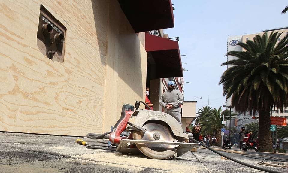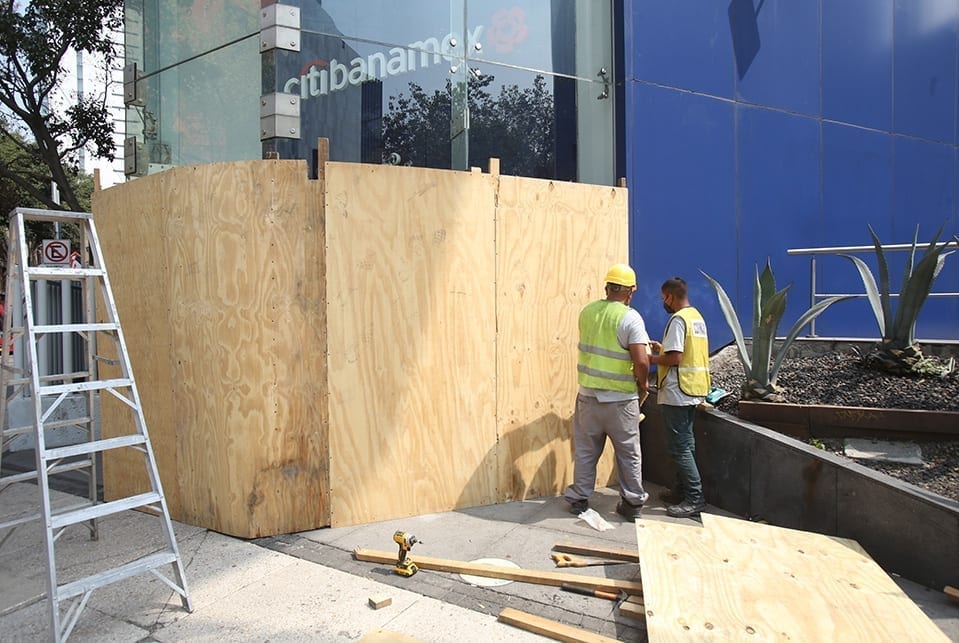 Con el fin de evitar daños estructurales durante la marcha del Día Internacional de la Mujer, dueños de negocios en la CDMX, tapizan sus establecimientos.