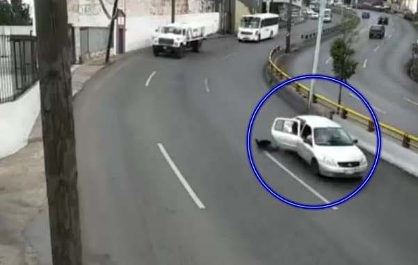 Un niño estuvo en riesgo de ser atropellado luego de que se saliera por la puerta de atrás de un vehículo que circulaba sobre el bulevar Adolfo López Mateos, en la capital de Zacatecas. Cámaras de seguridad captaron el momento del accidente.