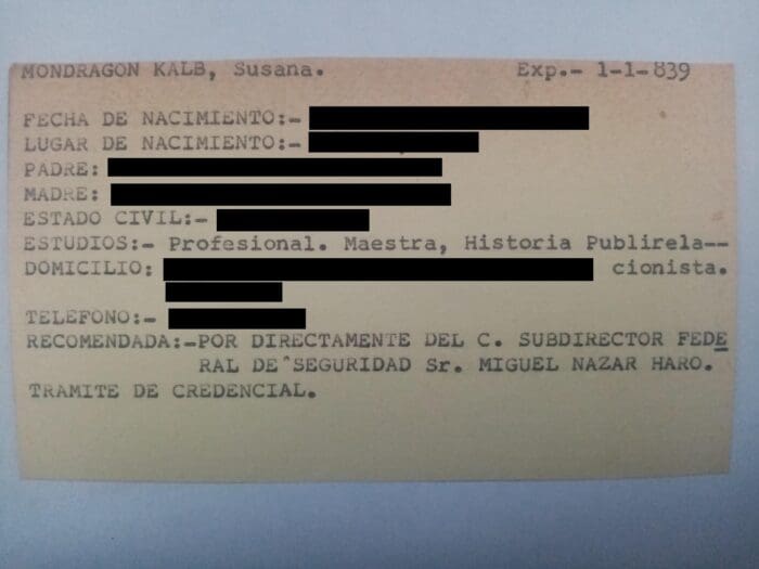 Lo mismo ocurrió con una hermana de Manuel Mondragón y Kalb, ex Comisionado Nacional de Seguridad, en los tiempos de Miguel Nazar Haro al frente de la DFS.