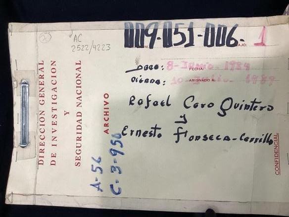 Un expediente del que se hallaron registros e incluso la portada, es el del homicidio de Kiki Camarena y la detención del narcotraficante Rafael Caro Quintero.