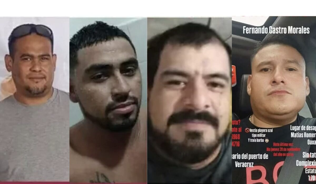 Los desaparecidos fueron identificados como Andrés Eloy Ramos Ceja, de 28 años; Juan José Pérez Hernández, de 37; Aldher Francisco Moreno Hernández, de 38 —todos de Tamaulipas—, y Fernando Castro Morales, de 41 años, procedente de Veracruz.