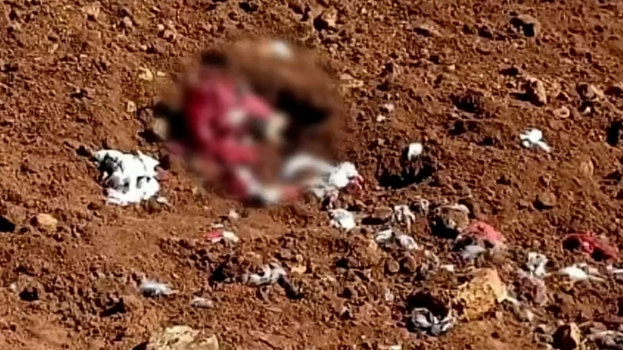 A unos 600 metros de la vivienda, en un terreno baldío, localizaron dos cuerpos semienterrados, junto con varias prendas de vestir.