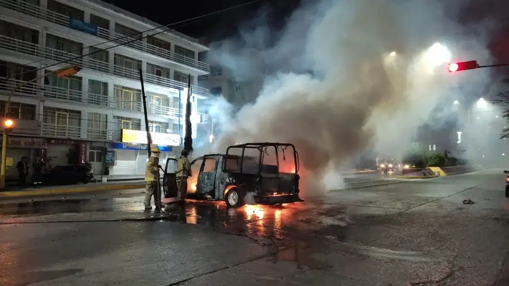 Un contingente de alumnos se apoderó de una de las patrullas, la trasladaron a la avenida Insurgentes, en el punto conocido como “Las Parotas” y ahí le prendieron fuego.
