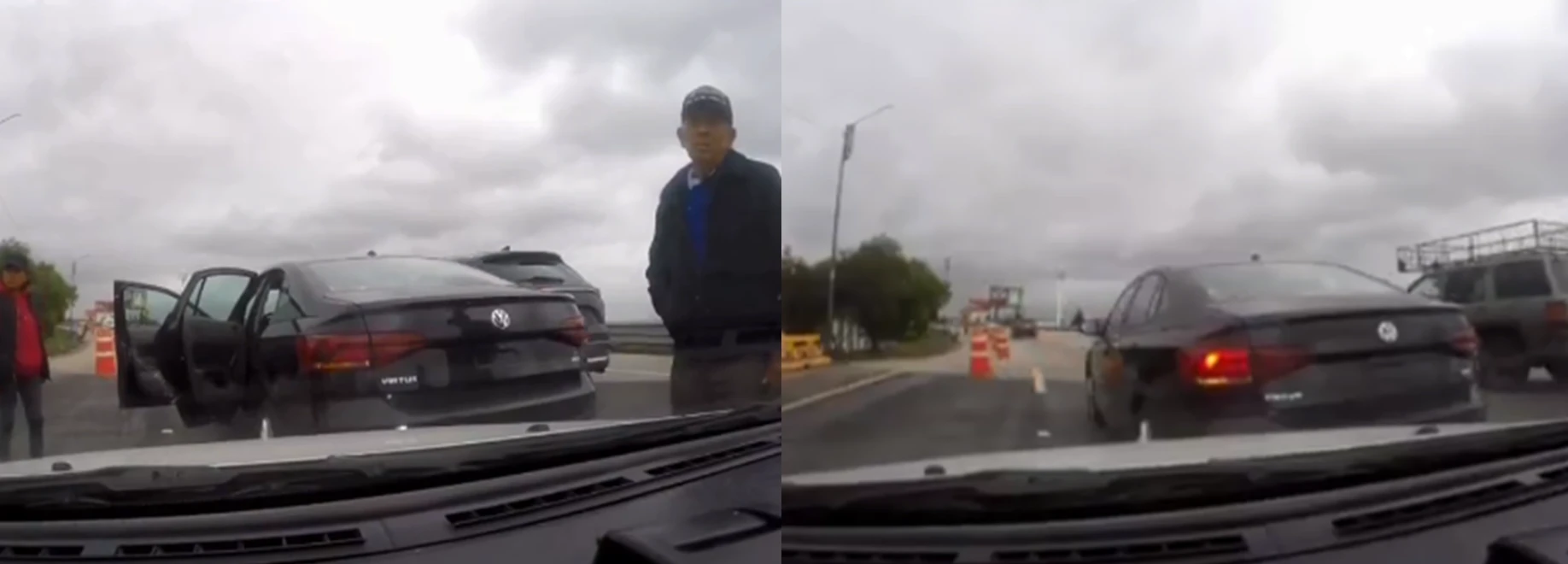 El automovilista, acompañado al parecer por su pareja, permanece dentro del vehículo y continúa grabando. Incluso se escucha cuando le asegura que todo saldrá bien y que no deben alarmarse.