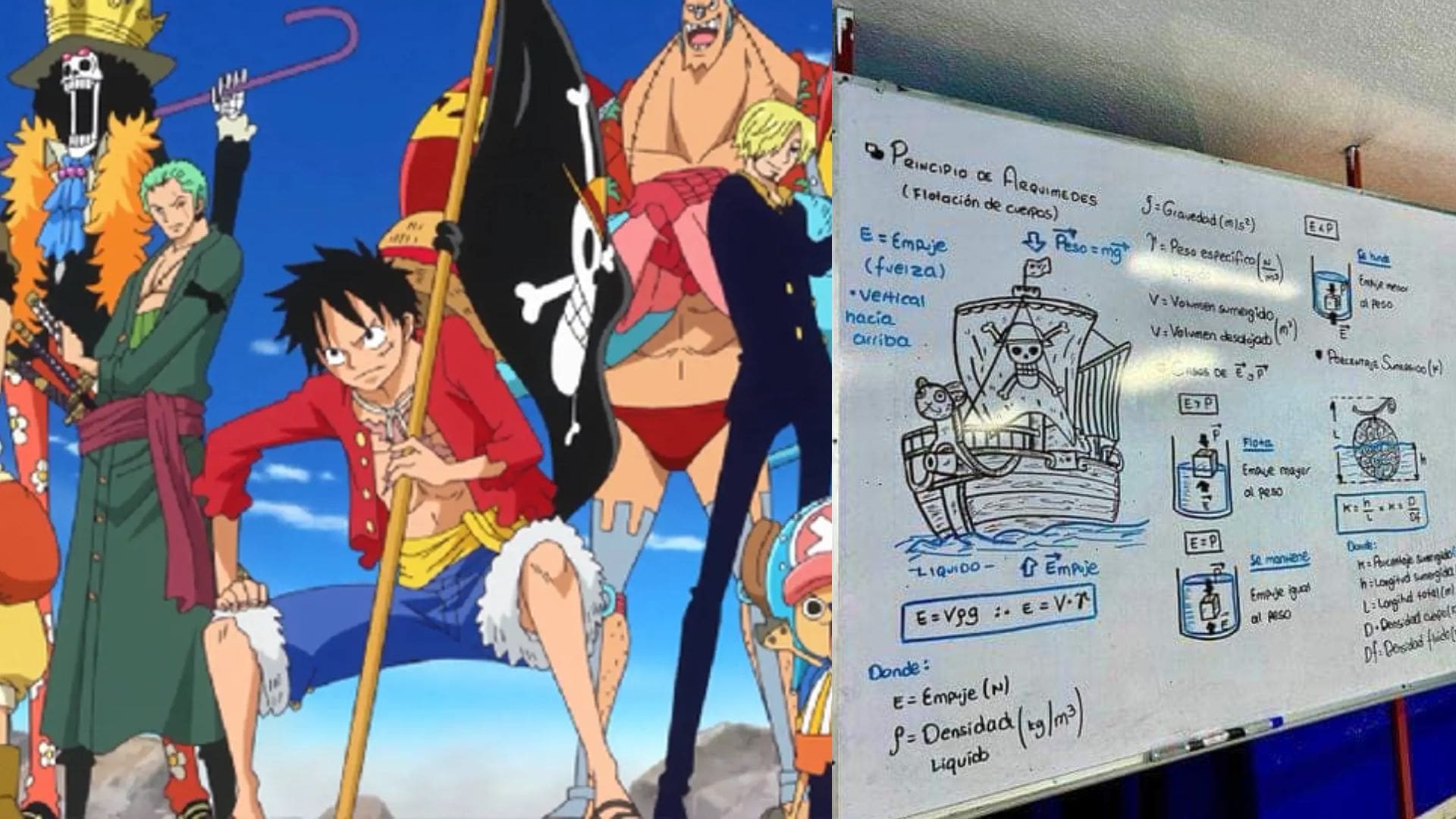 Utilizando a los personajes y referencias del manga de Elichiro Oda, el maestro explica cómo funciona el tiro parabólico, la tensión o el principio de Arquímedes.