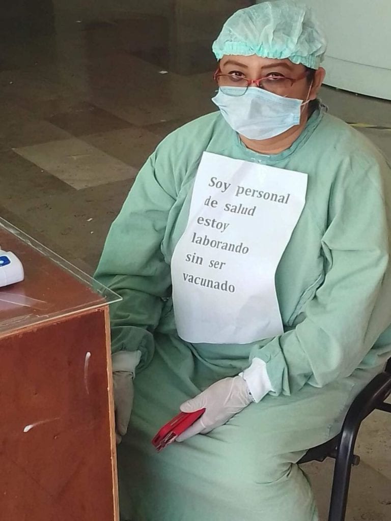 Debido a esta razón es que el personal de salud protesta de manera silenciosa, pues pese a todo no ha descuidado su labor. Lo que están haciendo estos profesionales de la Salud, es que se han colgado unos carteles donde dan a conocer que no les parece que tengan que estar arriesgando la vida y no se les haya vacunado.