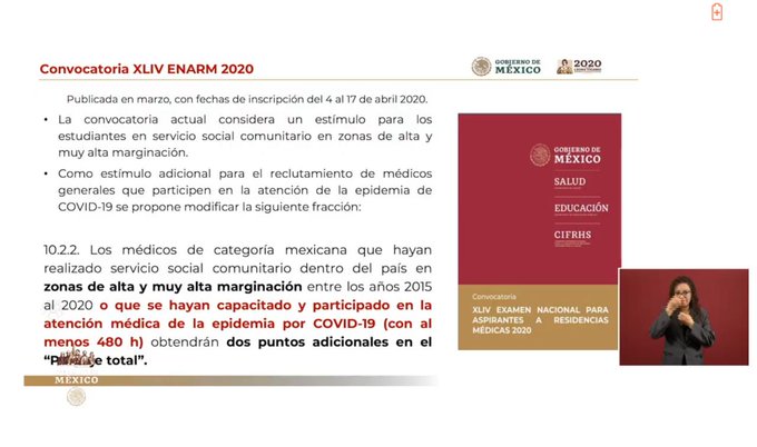 Borja Aburto mencionó que la convocatoria actual del ENARM de este año dará un estímulo para los estudiantes que de 2015 a 2020 realizan (o realizaron) su servicio social en zonas de alta y muy alta marginación.