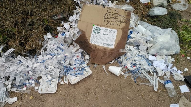 ¡Qué peligro! Botan jeringas de pruebas Covid-19 a la intemperie, temen contagios