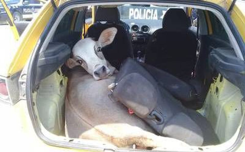 “Hacían una inspección a vehículos que se mueven de forma inusual, la sorpresa fue que transportaban un semoviente que no pudieron acreditar, no es muy común que lo trasladen así”, señaló el teniente Carlos Muñoz.