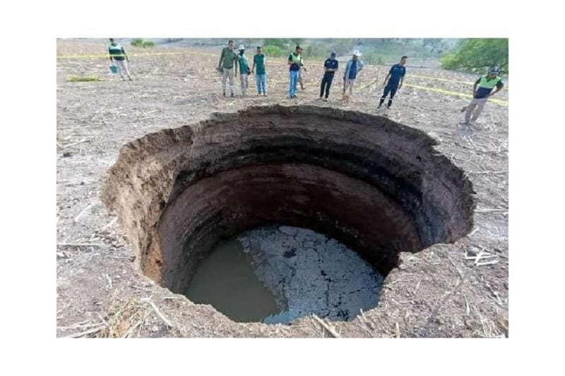 Un socavón de 10 metros de profundidad y 7.5 metros de diámetro apareció el domingo 9 de junio en un terreno de cultivo de maíz en la comunidad de Ahuatepec, ubicada en el municipio de Tlapa de Comonfort, Guerrero.
