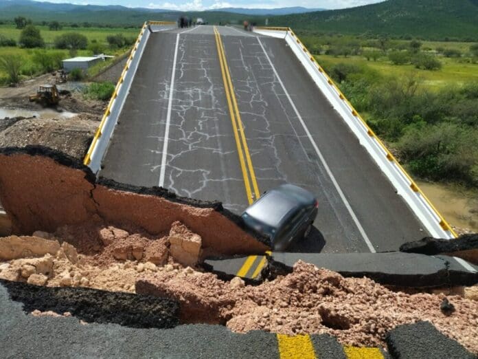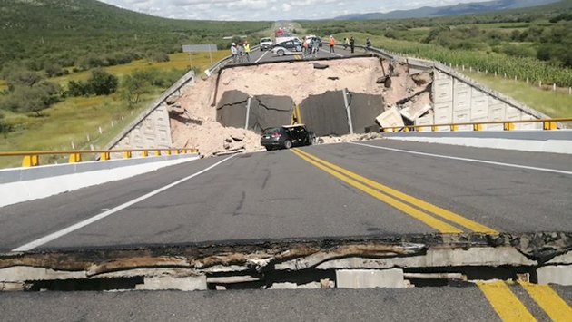 De acuerdo con autoridades del estado de San Luis Potosí, los automovilistas atrapados reportaronel derrumbe del puente Cerritos-Tula, también conocido como “Los Quiotes”, en el entronque Huizache-Antiguo Morelos, de la súper carretera 101.
