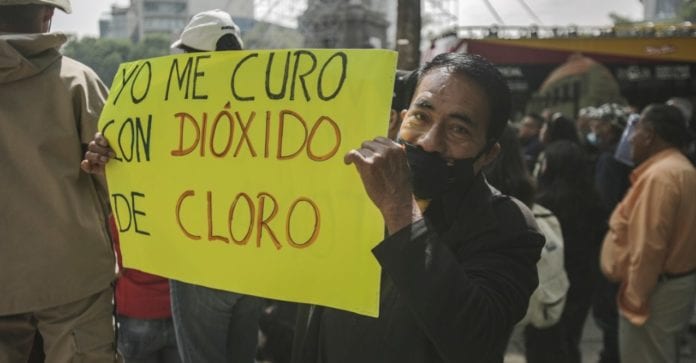 A pesar de que la Comisión Federal para la Protección de Riesgos Sanitarios (Cofepris) y la Universidad Nacional Autónoma de México (UNAM), han explicado que el dióxido de cloro no ayuda a combatir el Coronavirus y mucho menos es una alternativa, hay personas que aseguran lo contrario y se alzaron en el Ángel de la Independencia para manifestarse en pro del uso de la llamada Solución Mineral Milagrosa.