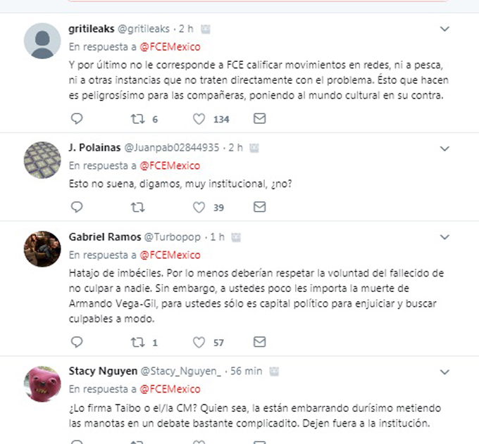 Aunque no se sabe si este fue un mensaje de su director, Paco Ignacio Taibo II, o un comentario directo emitido por su Community Manager, los usuarios en redes calificaron de irresponsable esta publicación. Aquí algunas reacciones: