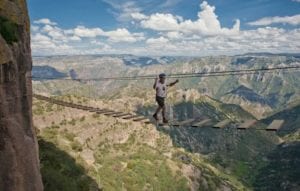 Justo en el corazón de la Sierra Tarahumara, en Chihuahua, se encuentra la tirolesa más grande del mundo, donde podrás sentirte como una ave al cruzar las Barrancas del Cobre. Además, cuenta con el teleférico más largo de México y un circuito llamado Vía Ferrata que incluye escalada en roca, rappel y salto libre. No conforme con ello, también debes vivir la experiencia de viajar en El Chepe y presenciar los mejores paisajes montañosos de México.