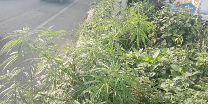 En pleno camellón del Periférico Norte en Naucalpa, Edo de México, fue encontrado un sembradío de marihuana con tres plantas lo suficientemente crecidas y listas para su consumo.