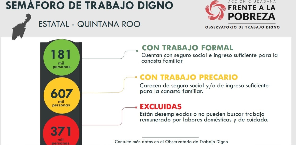 Chetumal.- La Asociación Civil “Acción Ciudadana Frente a la Pobreza” presentó su “Semáforo del Trabajo Digno” en la Región Sureste del país que abarca los estados de Campeche, Chiapas, Guerrero, Oaxaca, Puebla, Quintana Roo, Tabasco, Veracruz y Yucatán, donde habitan más de 20 millones de personas.