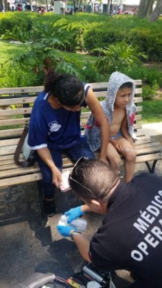 Los primeros auxilios fueron brindados a Sandra Verónica, de 27 años de edad, y a su hijo José Guadalupe, de seis años, los cuales presentaron quemaduras superficiales en los brazos.
