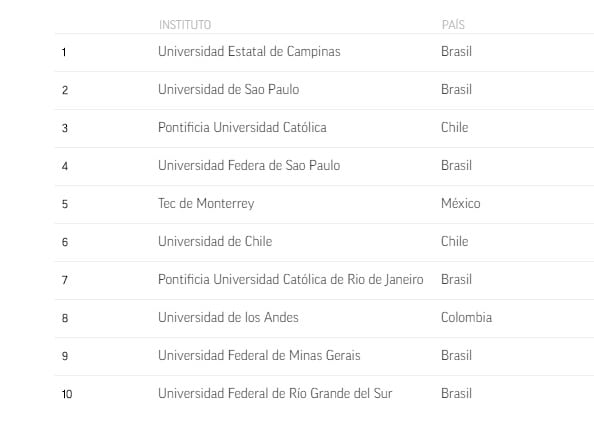 Este año se rankeó a 129 universidades de 10 países de América Latina.