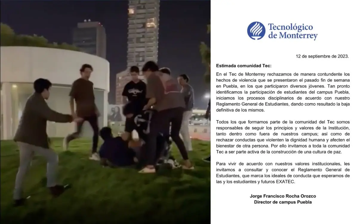 Por medio de un comunicado, el Tec de Monterrey rechazó los hechos de violencia en los que se vieron involucrados los “juniors”, como fueron bautizados en redes sociales, por lo que de acuerdo a su Reglamento General de Estudiantes fueron dados de baja definitiva.