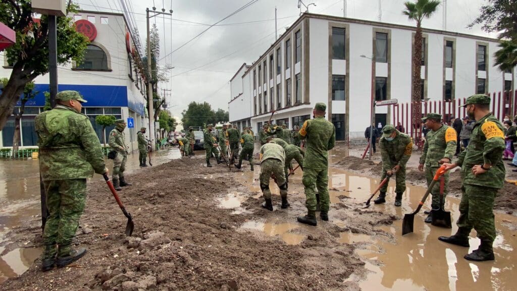 En las labores para liberar las vialidades afectadas participan cientos de trabajadores municipales, elementos del Ejército Mexicano y de la Guardia Nacional.