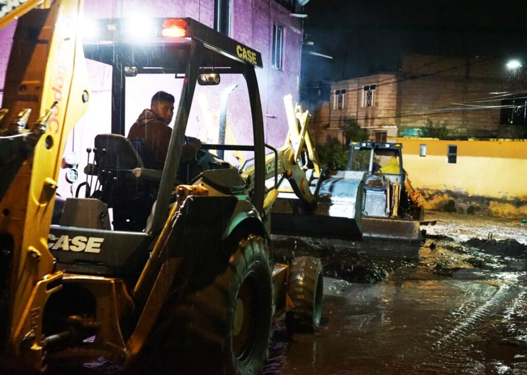El edil ordenó el despliegue durante la madrugada de trabajadores municipales por todo el territorio de Ecatepec para apoyar a la población, por lo que elementos de Protección Civil y Bomberos, y del organismo Servicios de Agua Potable, Alcantarillado y Saneamiento de Ecatepec (Sapase) efectuaron diversas acciones para agilizar el desalojo del líquido.