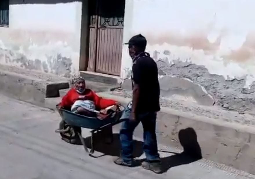 La abuela fue hasta el módulo de vacunación en una carretilla que era empujada por su hijo de 70 años, ambos ya forman parte de los más de 500 mil vacunados contra la cepa de coronavirus.