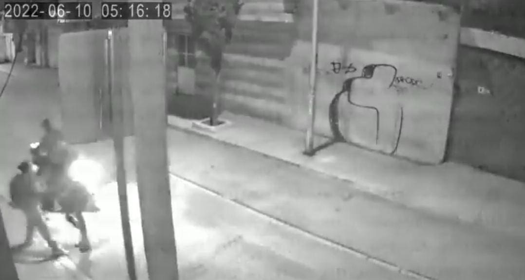 Como podemos ver, son las 5:16 am cuando la mujer va caminando sobre la calle Miguel Hidalgo de San Jerónimo Caleras. En ese momento aparecen cuatro sujetos a bordo de motocicletas, quienes le arrebatan sus pertenencias.