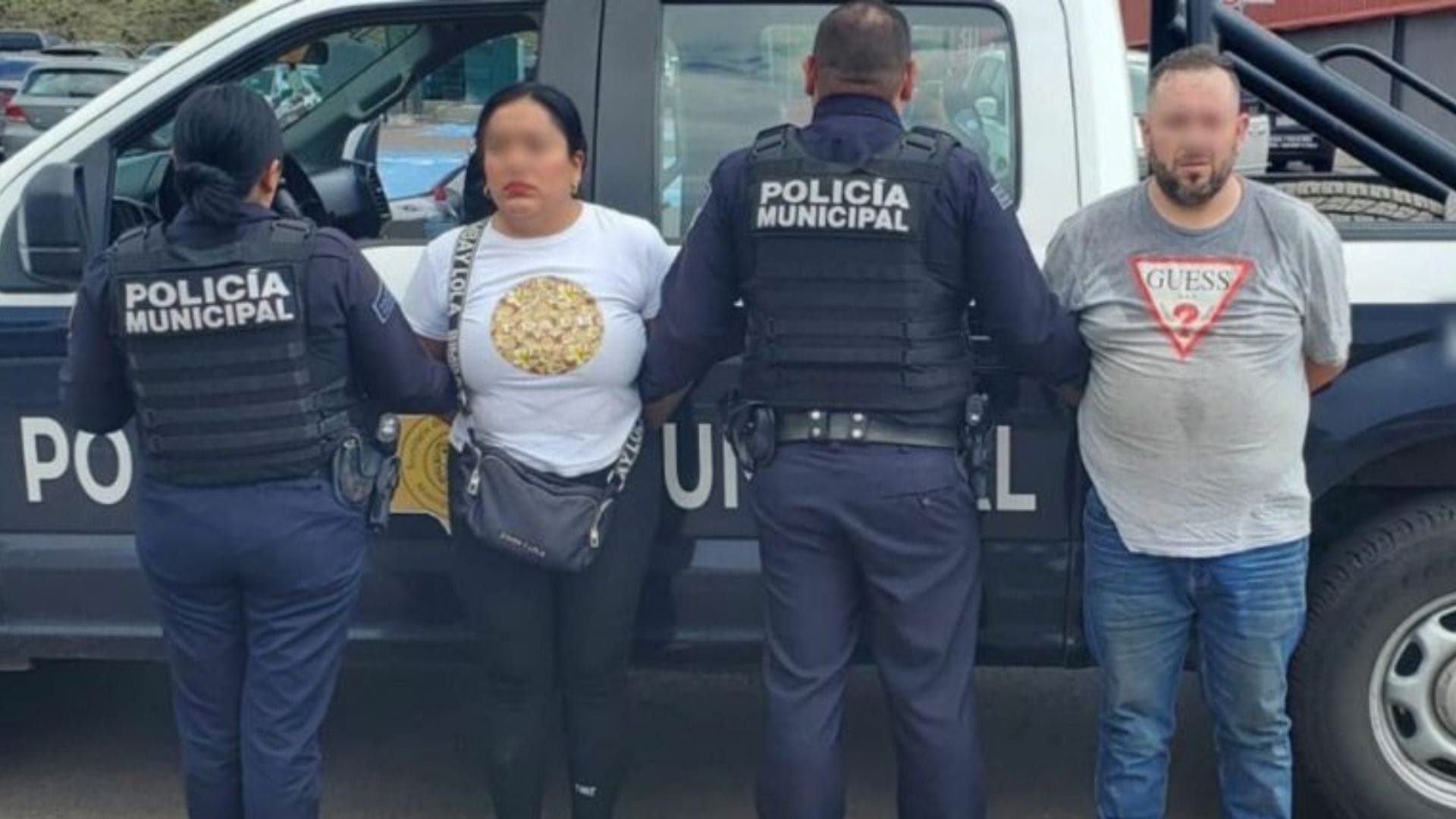 Por lo anterior, agentes de seguridad, a través de las cámaras de videovigilancia del Centro de Comando, Control, Comunicación y Cómputo (C4), captaron el momento en que la pareja estaba sustrayendo una llanta de refacción de otro vehículo, la cual metieron a su camioneta.