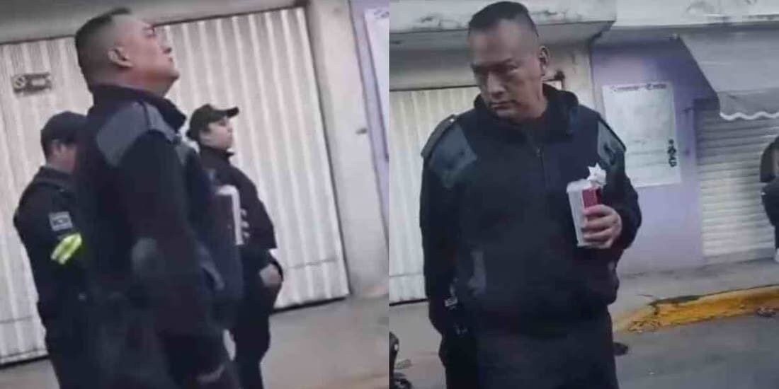 La grabación, de apenas siete segundos, de duración muestra al uniformado con una lata de cerveza en la mano, mientras sigue a la caravana de personas del Carnaval de Chimalhuacán.