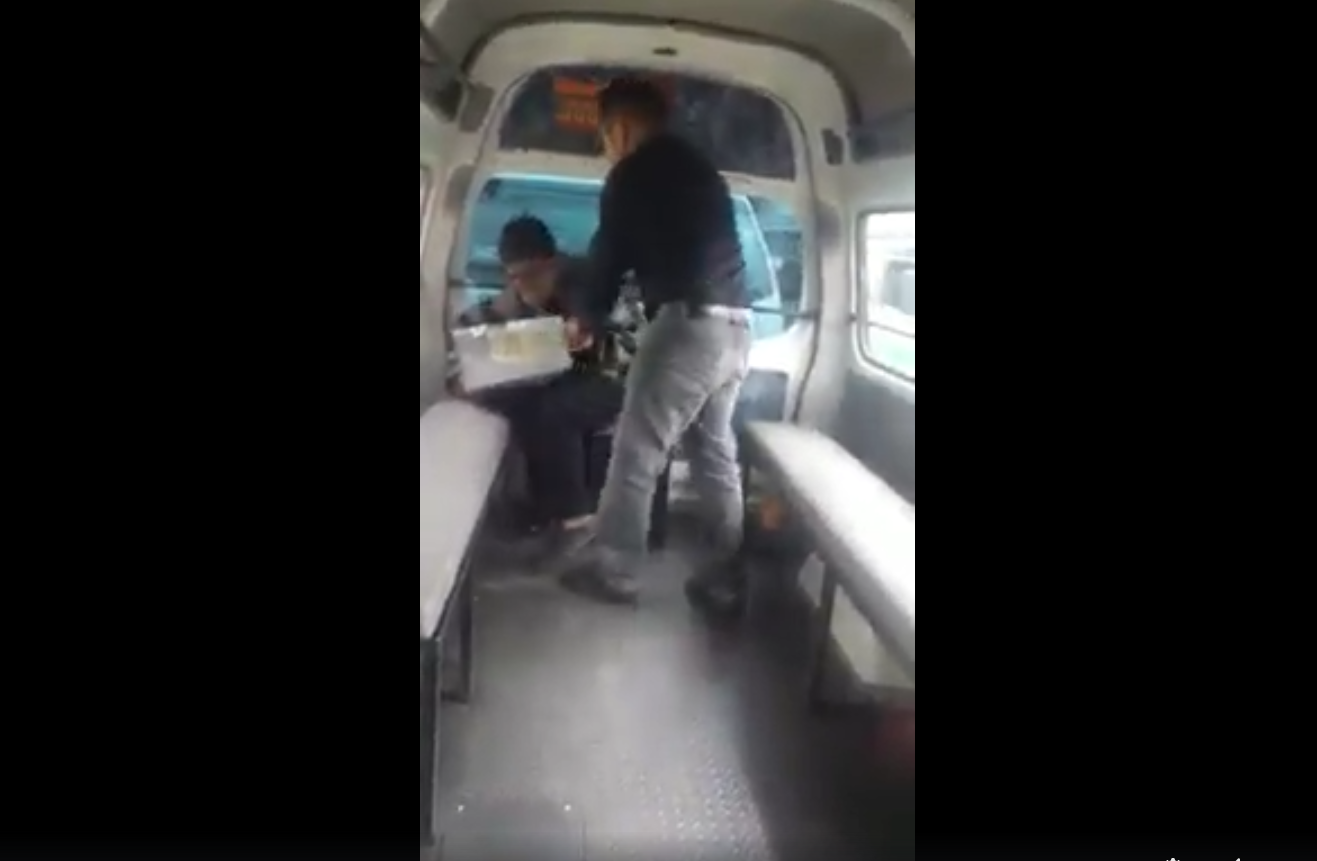Chiapas.-Sin piedad, el chofer de una combi de transporte público insultó y golpeó a jovencito que vendía tortas por que no traía para pagar el pasaje completo, hecho que fue registrado en video y publicado en redes sociales.