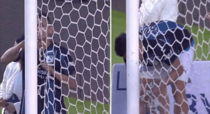 VIDEO: Con navaja en mano, sujeto se ROBA la red de una portería ¡en plena trifulca!