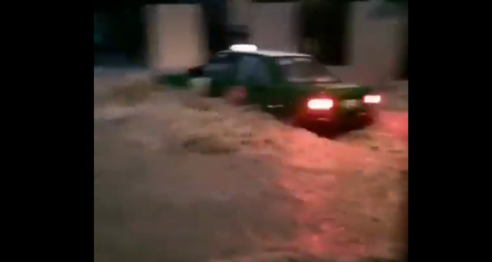 Nuevo León.-Dramáticas imágenes se difundieron en redes sociales y mostraron el momento en el que un taxi fue arrastrado por la corriente dejada por las fuertes lluvias de este fin de semana.