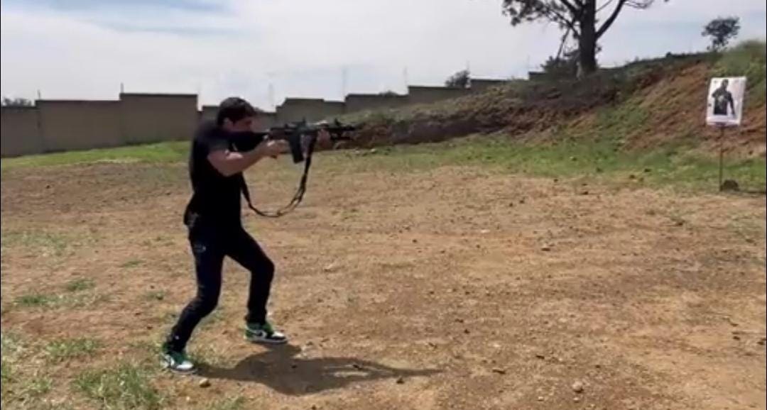 “Miren lo que le vamos a hacer a los terroristas de la agenda 2030, del cambio climático y de la ideología de género”, escribió Eduardo Verástegui al publicar un video en el que se le ve disparar un arma larga.
