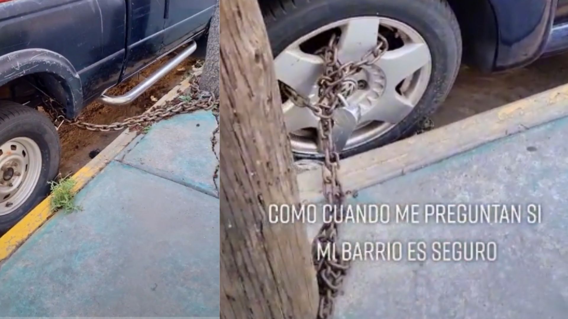 En el material, se evidencia cómo encadenan los coches a árboles y postes con el fin de que no los roben.