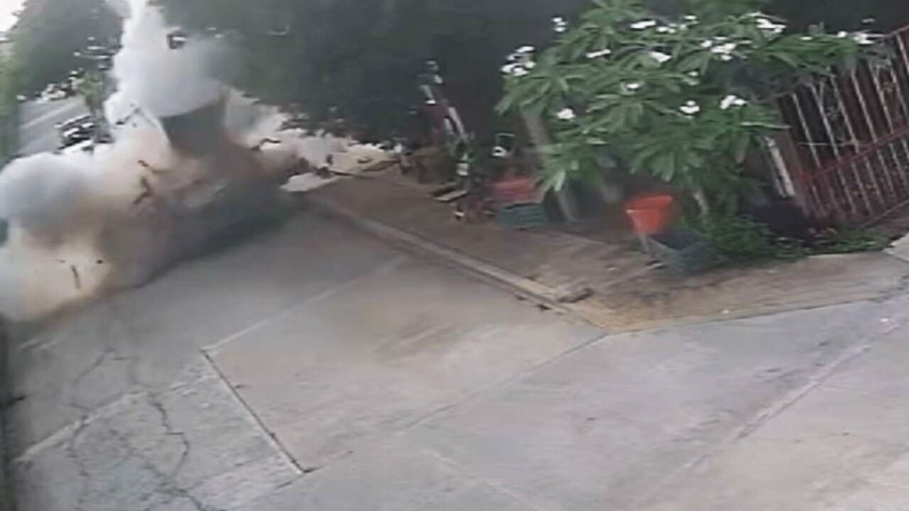 Los hechos ocurrieron en la calle Ignacio Allende, cerca de la primaria Amado Nervo, en una zona conocida como Kilómetro 31. Las imágenes de cámaras de seguridad muestran que la camioneta estaba estacionada frente a un domicilio cuando se produjo la detonación. No había otros vehículos ni peatones en la calle en ese momento.