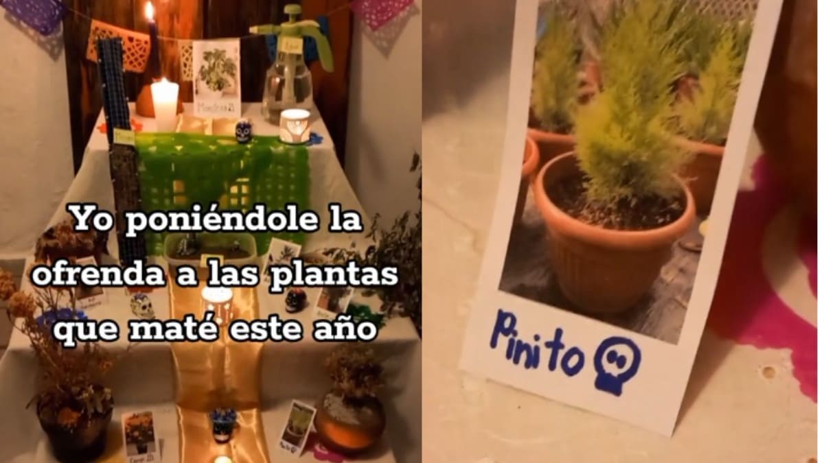Sin embargo, este año, un hombre decidió darle un giro único a esta tradición. A través de TikTok, Erik Velázquez (@erikvelazquez285) compartió un video en el que muestra su altar de Día de Muertos, dedicado no a personas, sino a las plantas que no pudo cuidar y que lamentablemente murieron. En el altar se pueden ver los nombres de cada planta, como Gerbera, Pinito, Albert y Monstera.