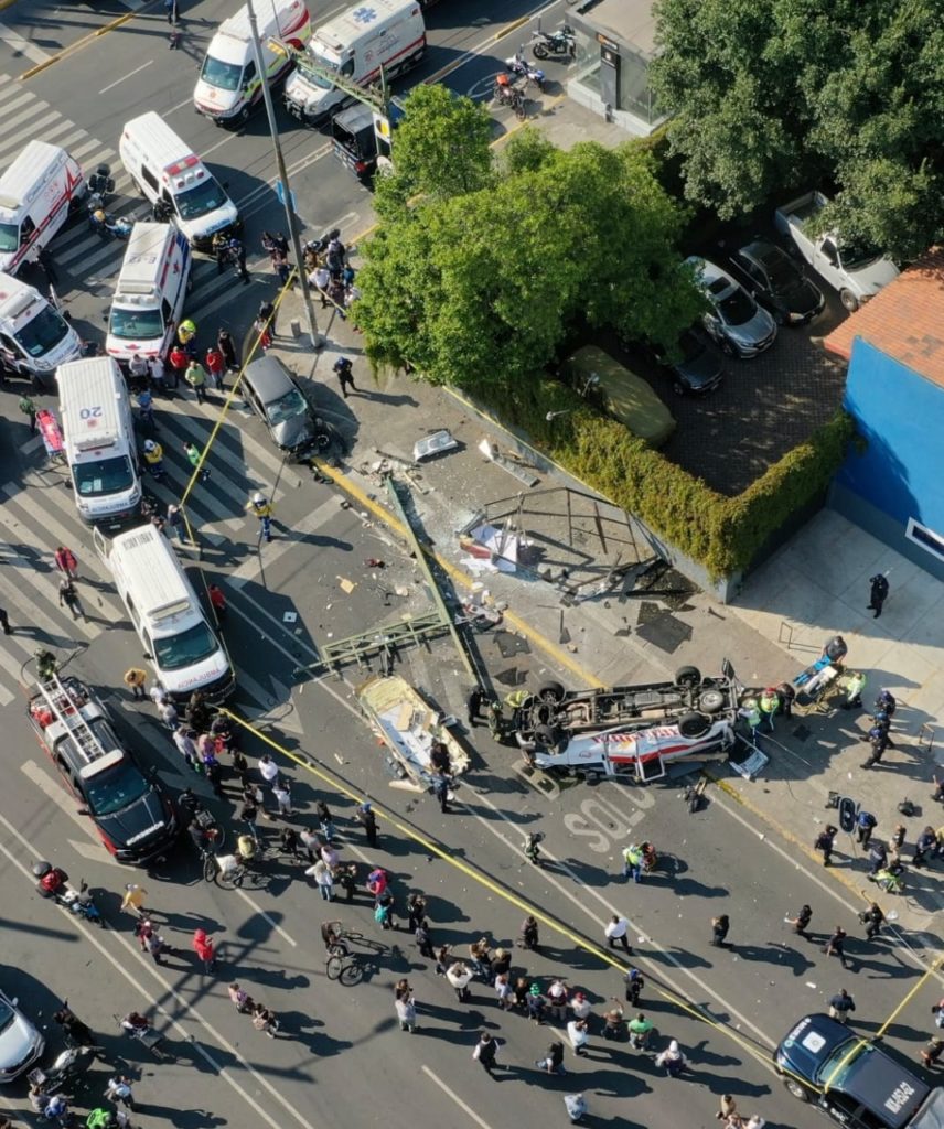 Esta una toma aérea de cómo se veía todo tras la volcadura de la ambulancia en la alcaldía Benito Juárez, en la colonia Portales de la Cdmx.