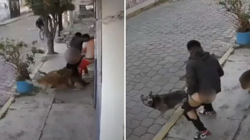 Una jauría de perros atacó a dos jóvenes del municipio de Metepec, Edomex, el hecho fue filmado por una cámara de seguridad, uno de ellos presentó algunas lesiones resultado de la agresión.