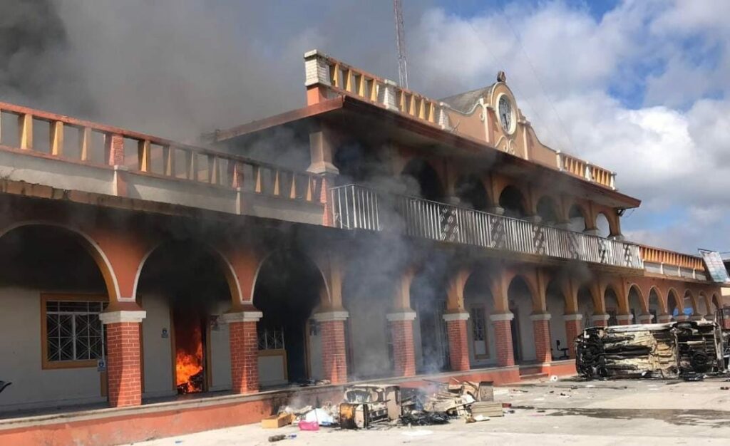Al principio incendiaron las patrullas, pero posteriormente ingresaron al Palacio Municipal para quemar documentos y mobiliario público.