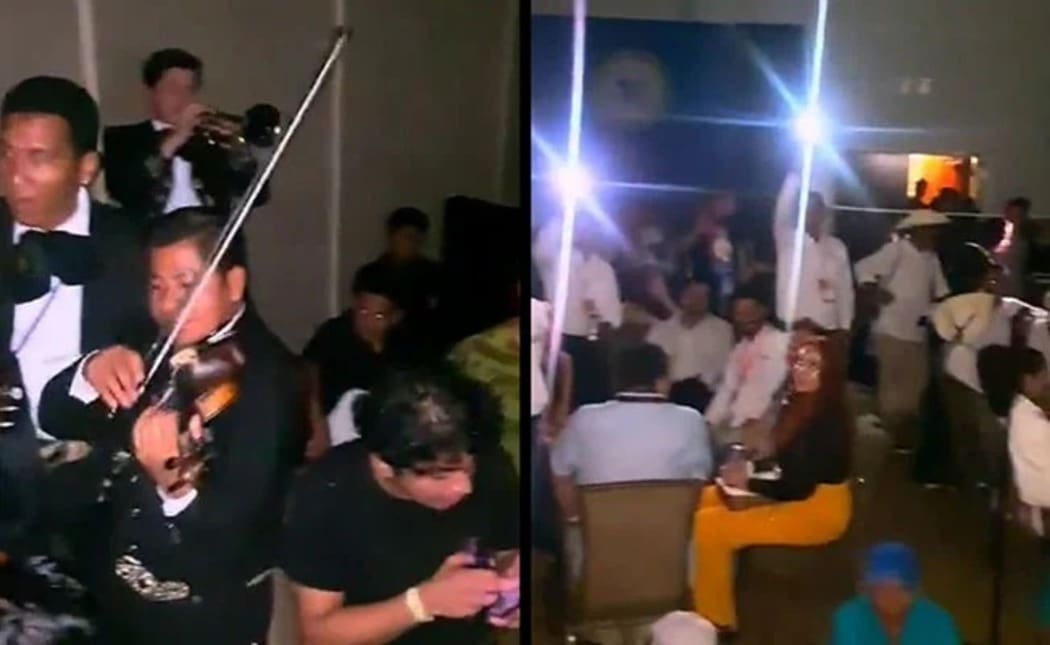A pesar de que en algún punto se fue la luz en las instalaciones de Expo Mundo Imperial, los mariachis siguieron tocando para amenizar la situación.