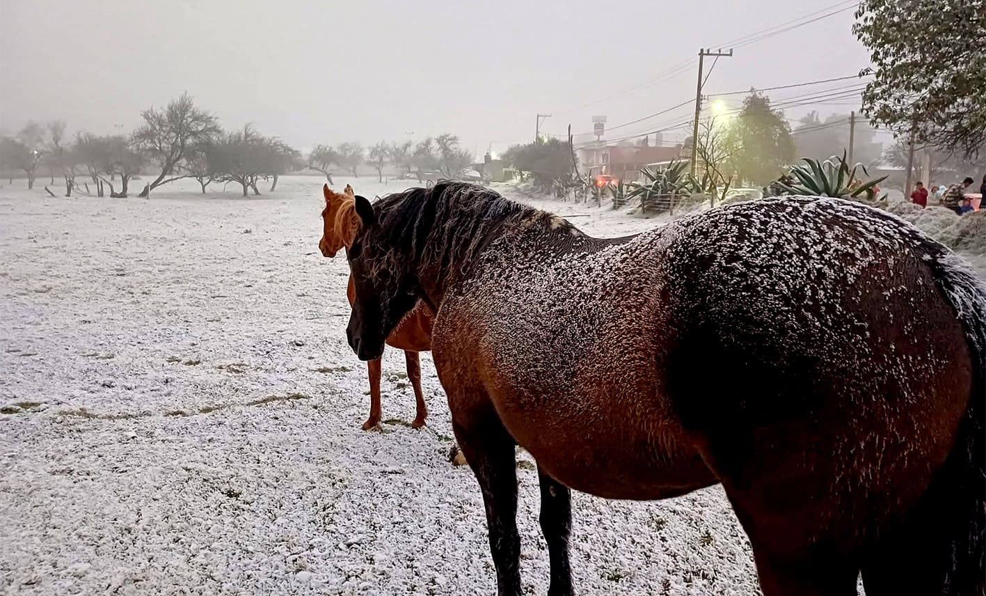 La tormenta invernal dejó nieve en Las Vigas de Ramírez, donde los paisajes gélidos se hicieron presentes. A orilla de carretera los campos verdes se convirtieron en un espectáculo de la naturaleza y los turistas disfrutaron de la inusual nevada en Veracruz.