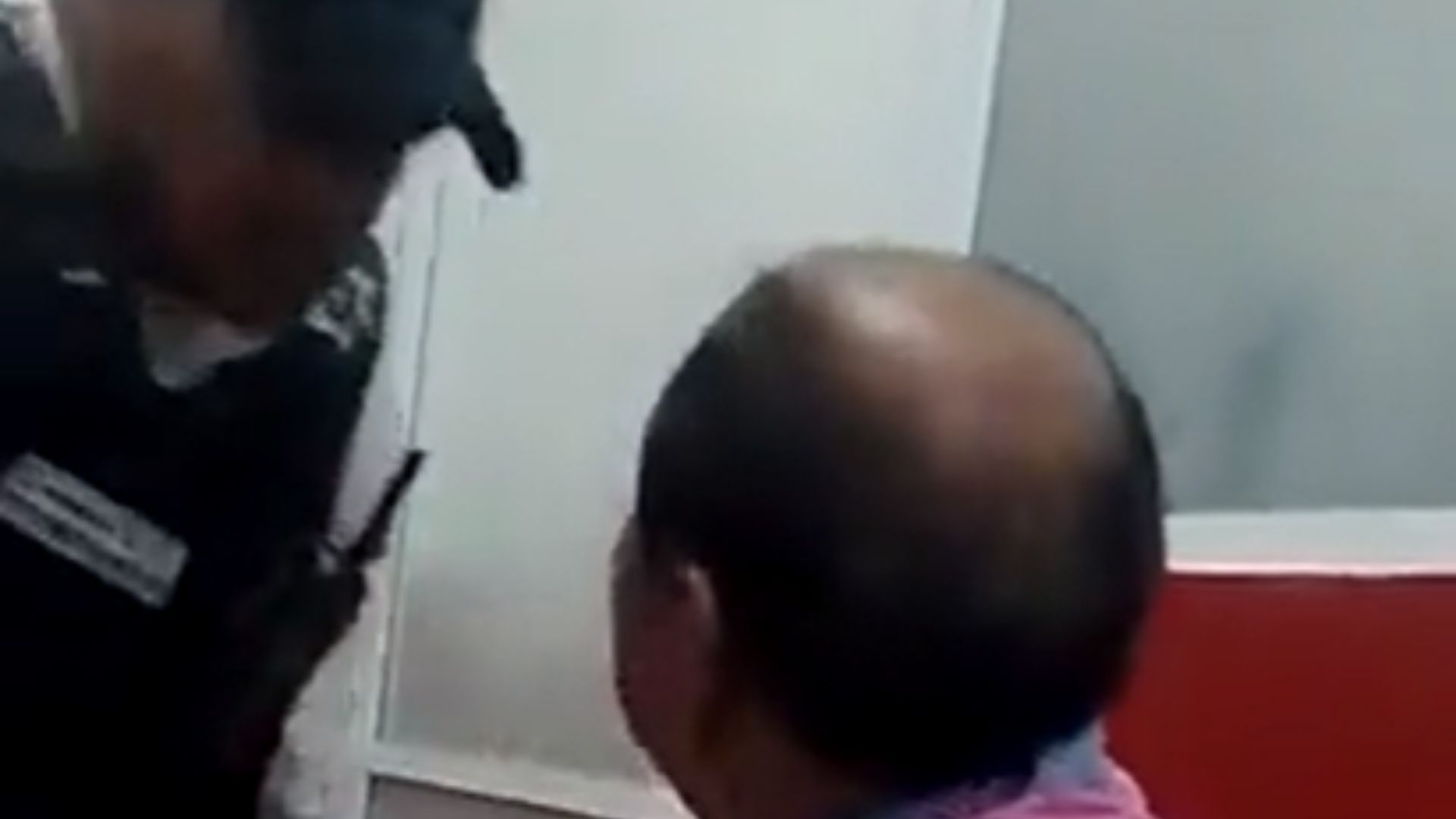 El momento quedó captado en vivo y fue difundido en redes sociales por diferentes medios de comunicación, dura más de 10 segundos y se ve que el policía trataba de calmar al detenido, el cual lo provoca con palabras.