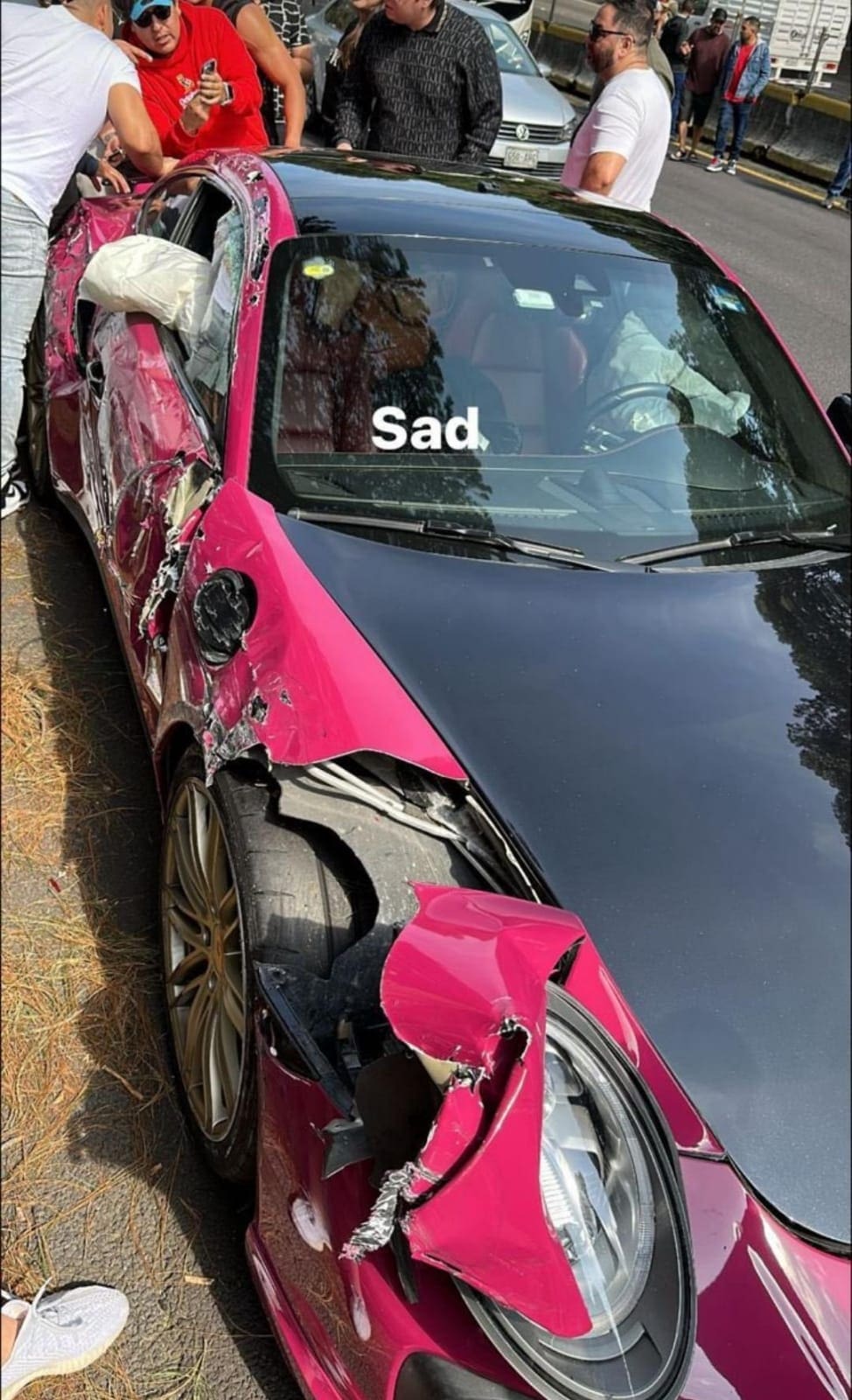 Esats son las imágens del imprudente accidente causado por la irresponsabilidad del conductor del Porsche que acabó estrellado en la parte trasera de un autobús sobre la México-Cuernavaca.