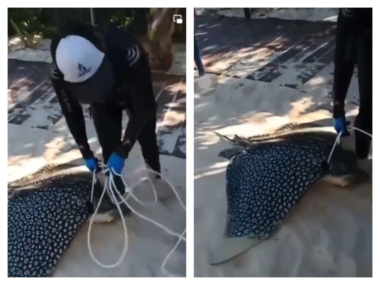 De acuerdo a lo que se observa y se escucha en el video, la persona que realiza la grabación expresa que este es un acto ilegal, mientras los supuestos pescadores continuaban arrastrando a la mantarraya.